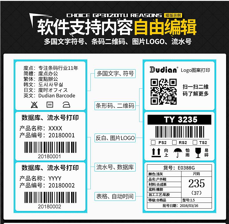 佳博GP3120TU熱敏條碼打印機(jī) 不干膠標(biāo)簽機(jī)服裝吊牌價格貼紙 超市收銀奶茶手機(jī)藍(lán)牙二維碼商食品面包月餅倉庫